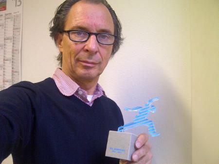 Vielleicht der Höhepunkt meines Berufslebens als Architekt: Auszeichnung der Internationalen Bauausstellung (IBA) für das IBA-Projekt "Neubau für die Behörde für Stadtentwicklung und Umwelt (BSU)" in Hamburg-Wilhelmsburg, Bauzeit 12/2010 bis 04/2013: die ganze Schinderei wurde gewürdigt, und ich habe mich darüber sehr gefreut! Die kleine Skulptur stellt den städte-baulichen "Sprung über die Elbe" dar, also die Anbindung des Problemstadtteils Wilhelmsburg an das Hamburger Zentrum, die sicher noch nicht abgeschlossen ist. Als Projektleiter bei Obermeyer Planen+Beraten GmbH habe ich meinen Teil zum Gelingen dieses Projekts beigetragen, das auf dem großartigen Entwurf von Sauerbruch Hutton Architekten gründete.